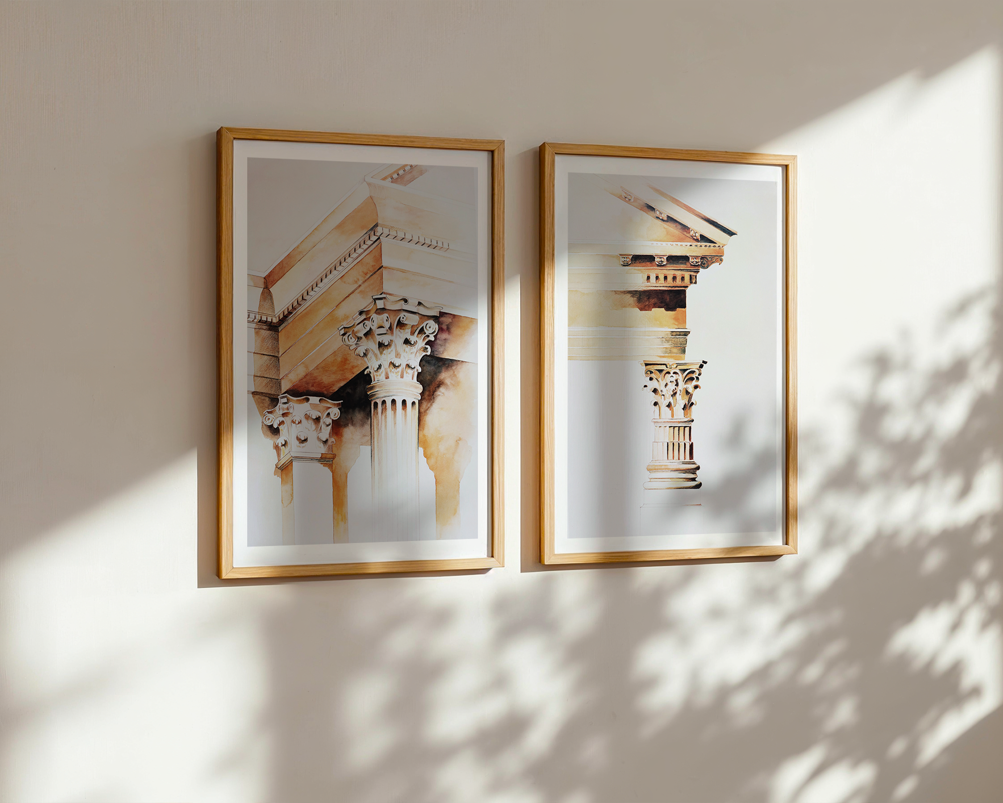 Discover the beauty of man-made structures that shape our world. This architectural collection of watercolour paintings and line drawings explore the character of buildings, capturing their strength and rich detail.